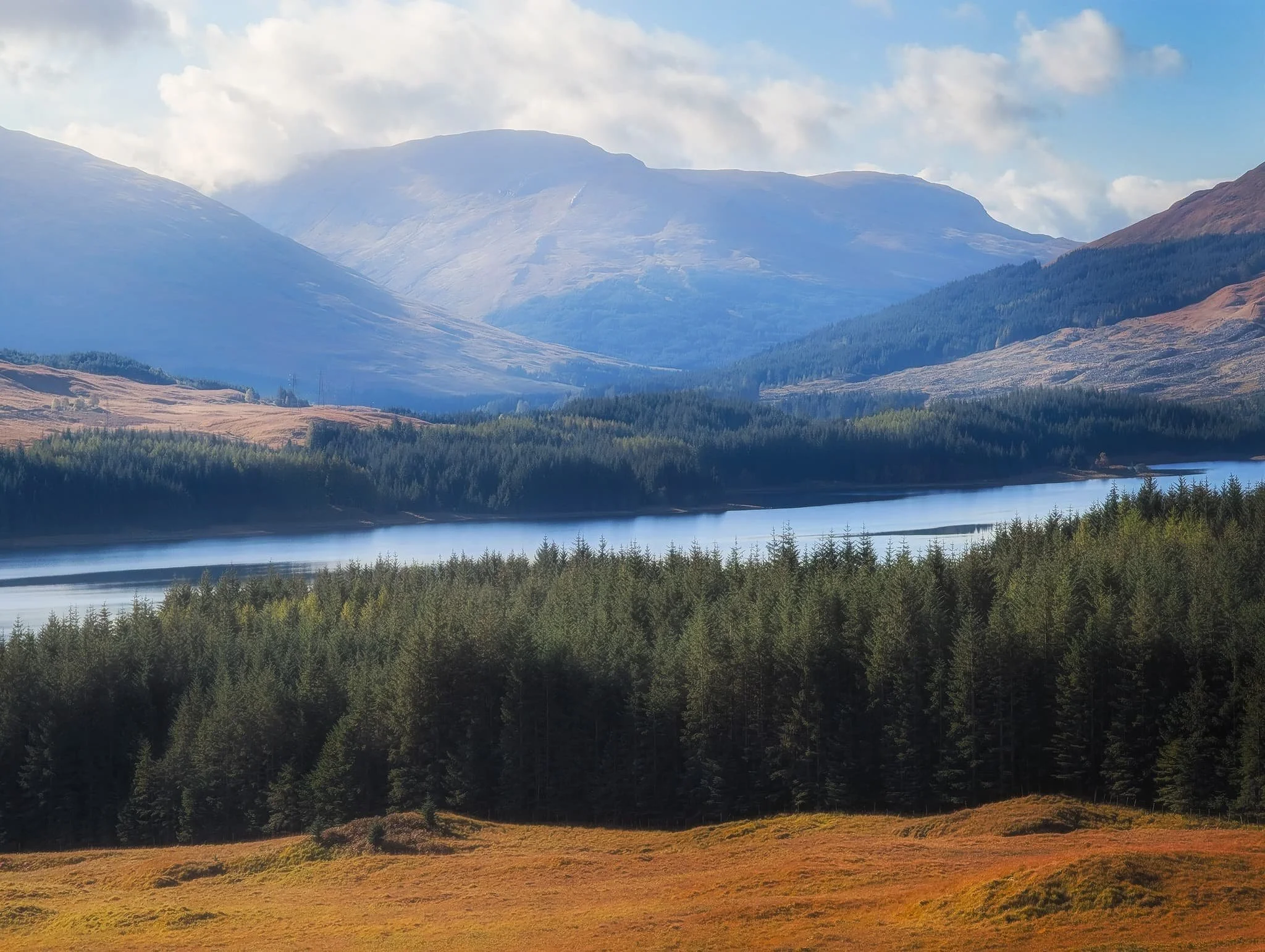 After enjoying the sand, wind and expansive views, we drove further along the road to stop at Sutherland’s Grove, part of Barcaldine Forest. We quickly took the longest of the prescribed trails and soon veered off it completely. Still, it meant we got incredible views like this, across the forest to the Kingairloch mountains.