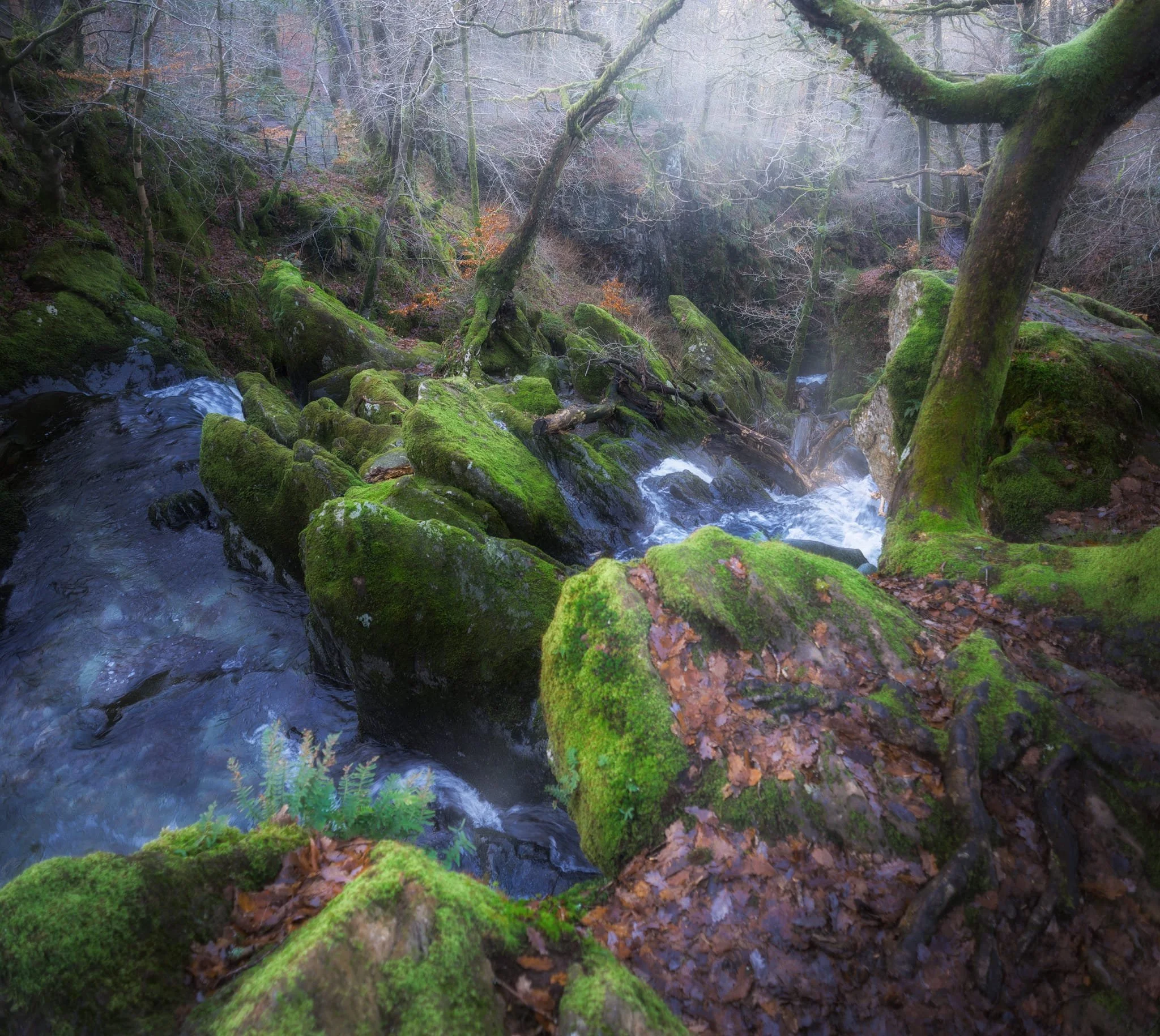 Heading down the hill towards Goody Bridge, the snowcapped Great Rigg on the right is illuminated. Love the rusty colours some of the Lake District and Scottish fells turn in the autumn and winter.