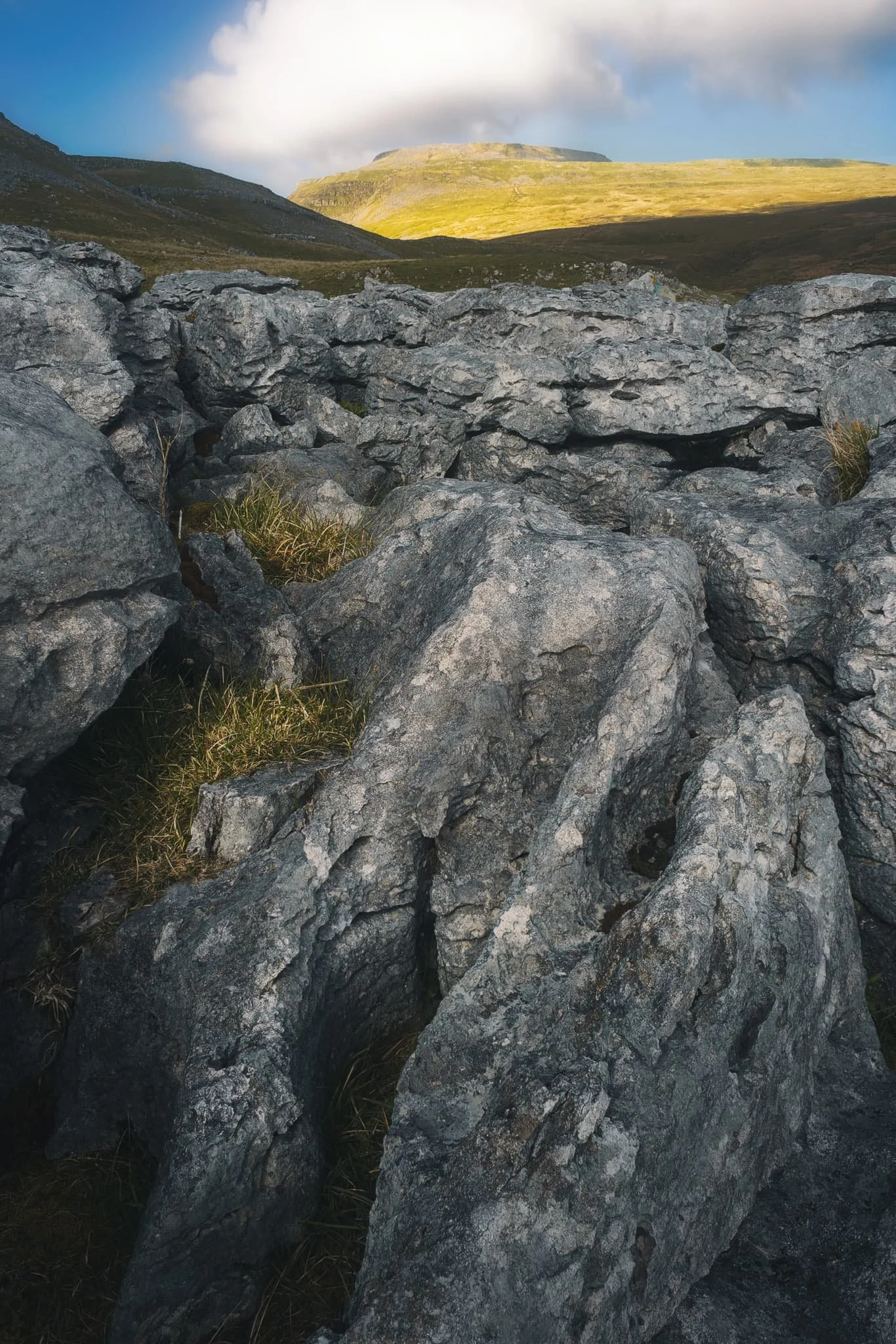 Further up the plateau, a group of large limestone boulders attract my attention. I line a composition, attempting to fill the frame with them whilst keeping Whernside visible in the distance.