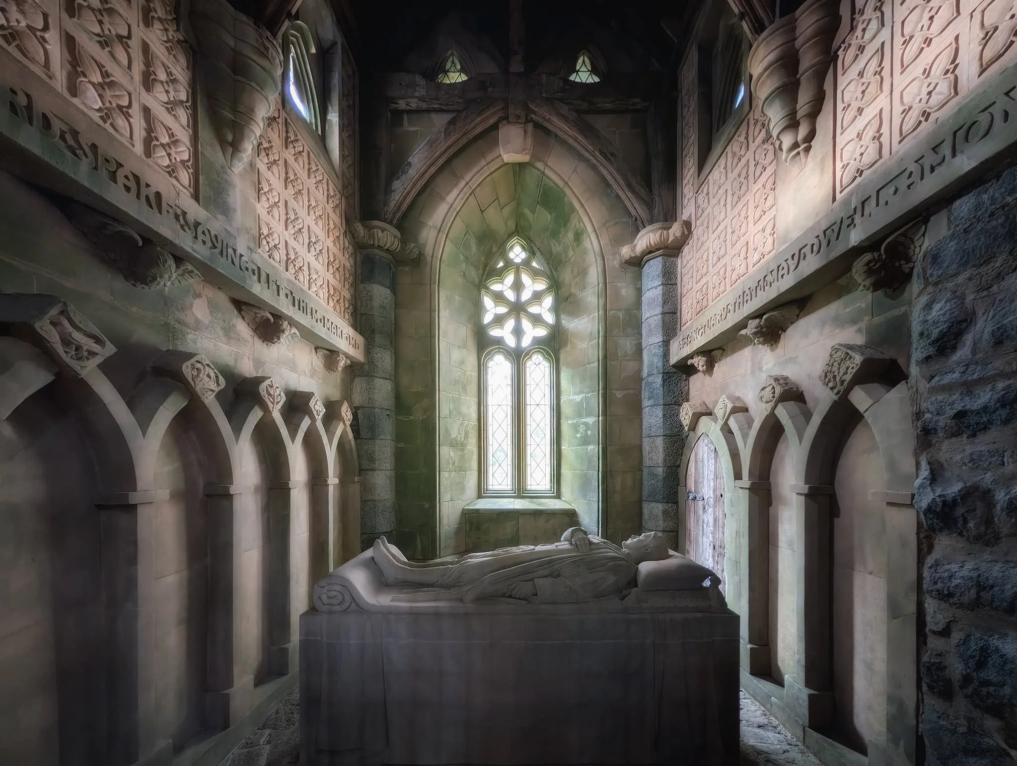 As the light dipped and softened, it pulled out all the gorgeous textures and shapes around the front of the castle. Here you’re just outside the entrance to the Hall, with the South Tower visible in the background.